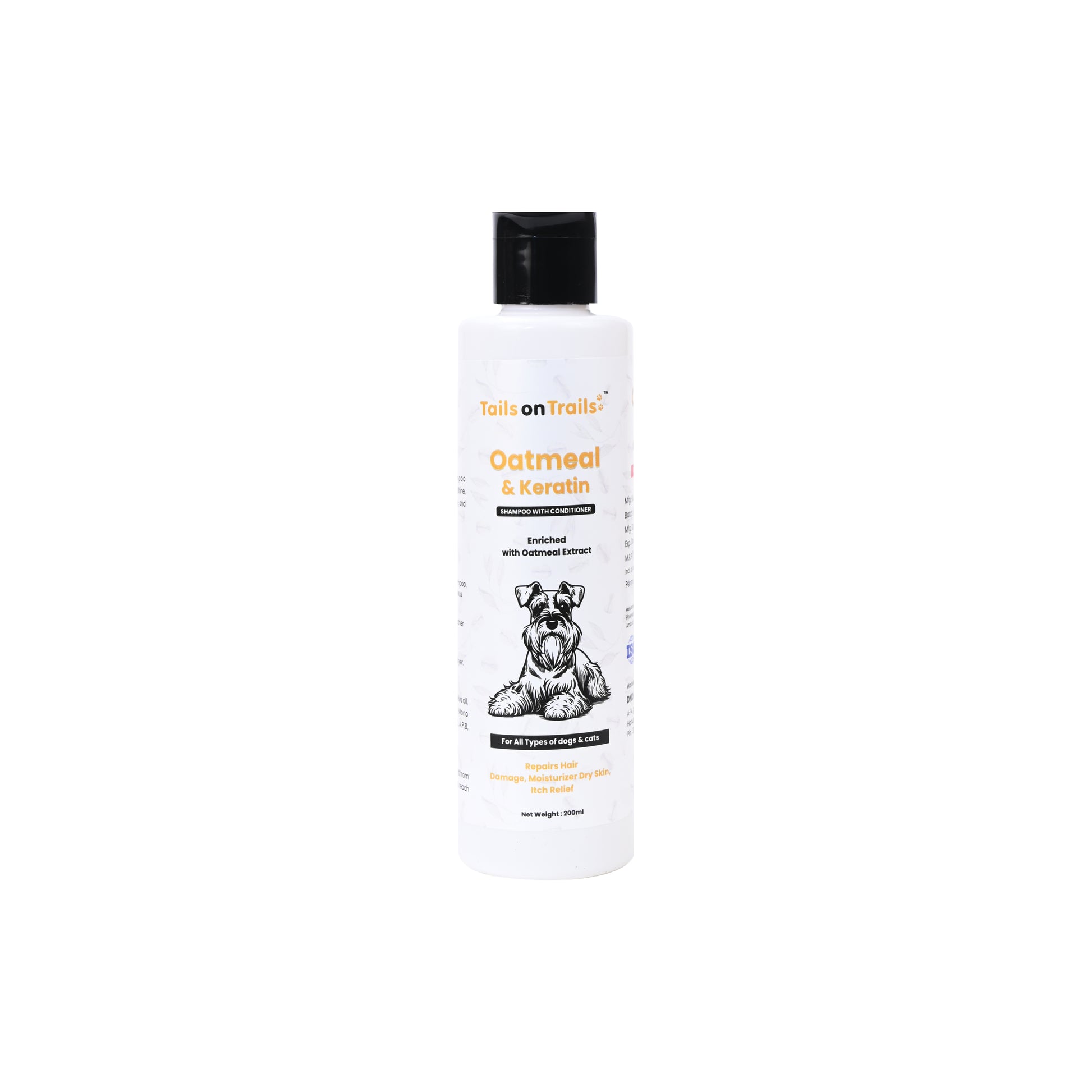 Tails on Trails Oatmeal and Keratin Shampoo With Conditioner | Improves Hair Quality & Adds Shine, Moisturize Dry Skin, Itch Relief | Enriched with Oatmeal Extract | for All types of Dogs & Cats 200ml